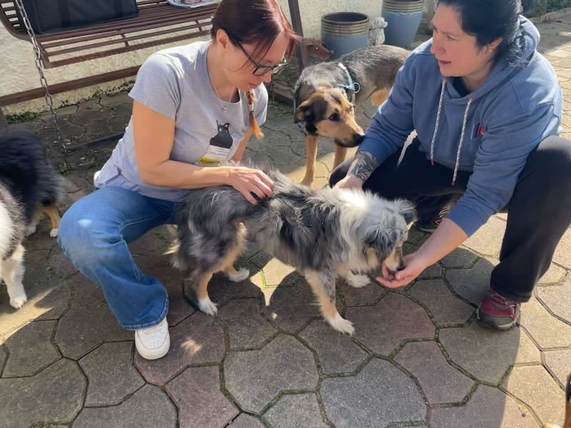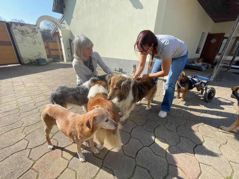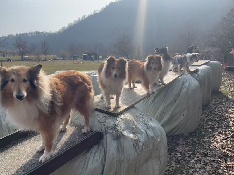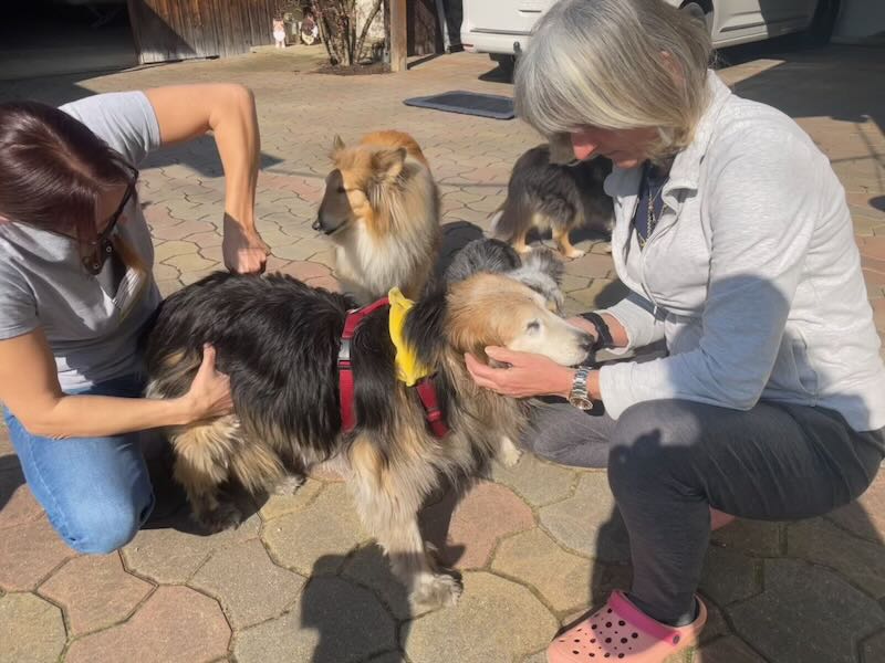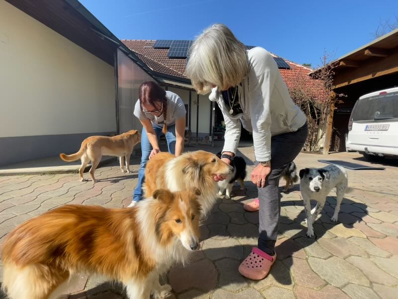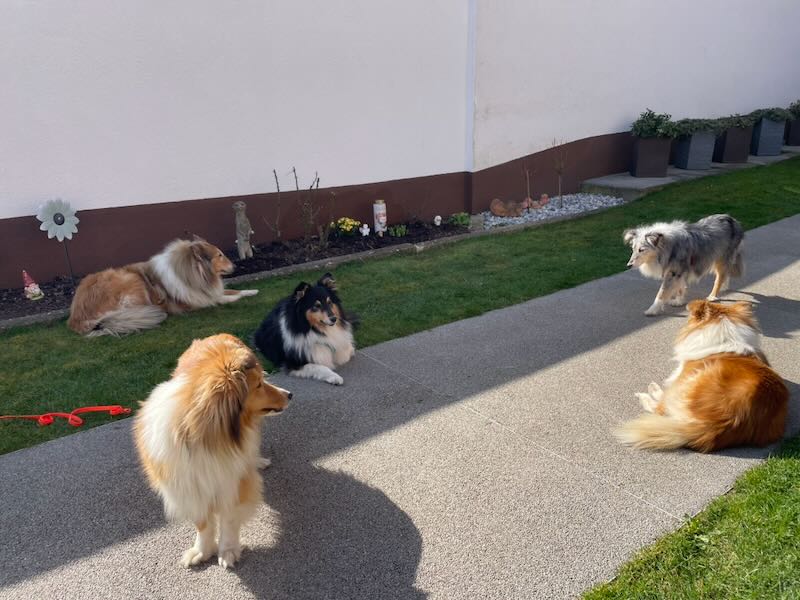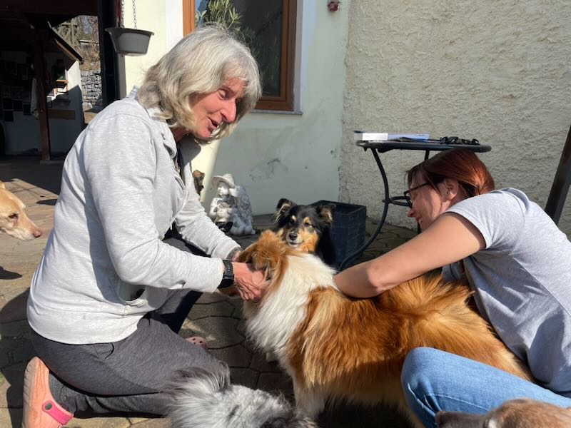 Chiropraktik war wieder angesagt. Die wilden Senioren brauchen regelmäßig Wellness damit sie fit bleiben. Apropos fit: Ömchen heißt ab sofort nicht mehr so. Das passt nicht mehr. Sie ist so dermaßen gut drauf und agil, dass wir diesen Namen einfach nicht mehr rechtfertigen können. Damals als sie kam war sie ein Geriatriefall aber heute….. Also ist Ömchen jetzt Schönchen oder Schöni. DAS wird ihr gerecht so wie sie jetzt ist. Chiro gab´s für sie, für die eifrige Tessy – die stets mit den Maukalas (Sheltiebande) mithalten möchte, den Sorgenbuben Luki, die ebenfalls sehr agile und fleißige Naami-Mami. Und für meine beiden Seniorinnen Estrella und Sophia. Allen Hunden hat das richtig gut getan. Die anderen Tier-reich Familienmitglieder waren wie immer mittendrin und dann waren sie alle so beweglich, dass Schönchen sogar die Runde über die Ballen gehen konnte (natürlich mit Absicherung durch uns). Sie ist stets hinter den anderen Maukalas her und braucht dann aber einen Tag Ruhepause mit Dauerschlafen. ![]()